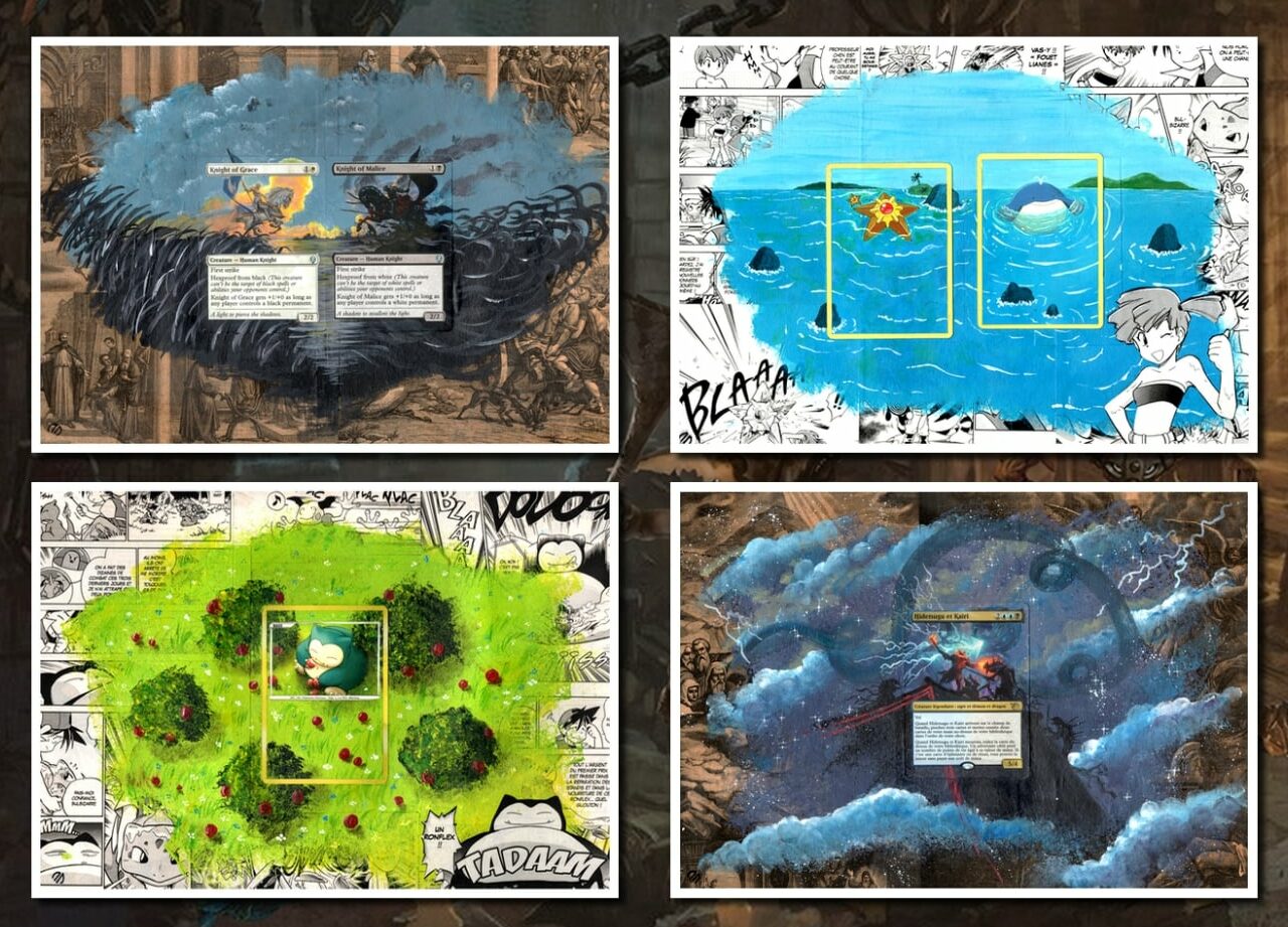 Martial Alters personnalise des cartes Magic et Pokemon afin de les rendre uniques, par la peinture, le collage, il les sublime en imaginant des mises en scène originales.